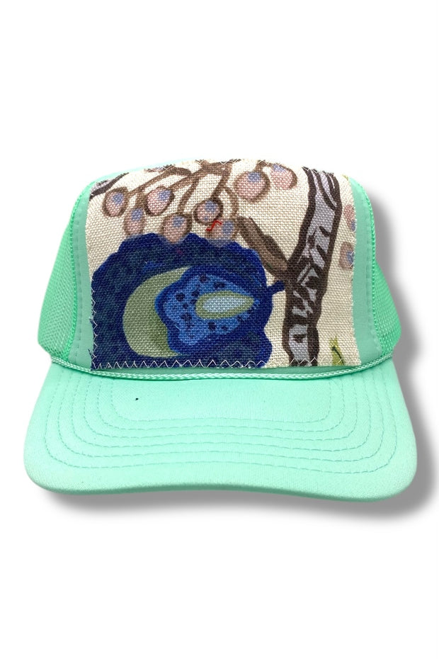 Your easy, throw-on-and-go, trucker with Turkish kilim patch. No two are alike! One size hat with structured bill and mesh back with adjustable snaps. Each piece has been stitched to ensure quality and discourage fraying (Fraying adds character your collectable) while maintaining the integrity of the fabric. However, due to the nature of the textiles, some fraying may occur. Additionally, color variations & imperfections should be expected as the norm. Wear with care!