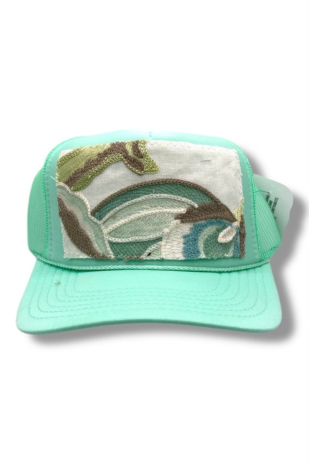 Your easy, throw-on-and-go, trucker with Turkish kilim patch. No two are alike! One size hat with structured bill and mesh back with adjustable snaps. Each piece has been stitched to ensure quality and discourage fraying (Fraying adds character your collectable) while maintaining the integrity of the fabric. However, due to the nature of the textiles, some fraying may occur. Additionally, color variations & imperfections should be expected as the norm. Wear with care!