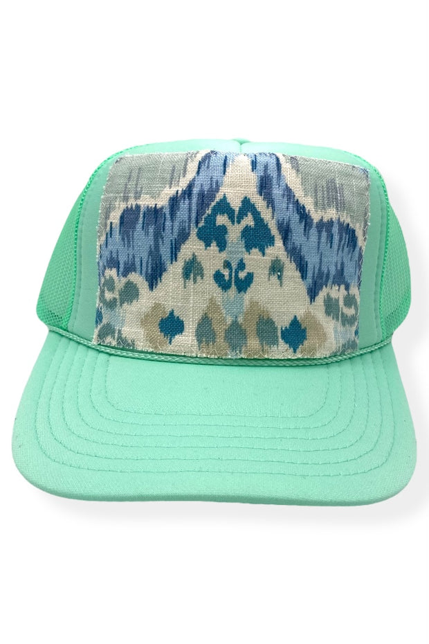 Your easy, throw-on-and-go, trucker with Turkish kilim patch. No two are alike! One size hat with structured bill and mesh back with adjustable snaps. Each piece has been stitched to ensure quality and discourage fraying (Fraying adds character your collectable) while maintaining the integrity of the fabric. However, due to the nature of the textiles, some fraying may occur. Additionally, color variations & imperfections should be expected as the norm. Wear with care!