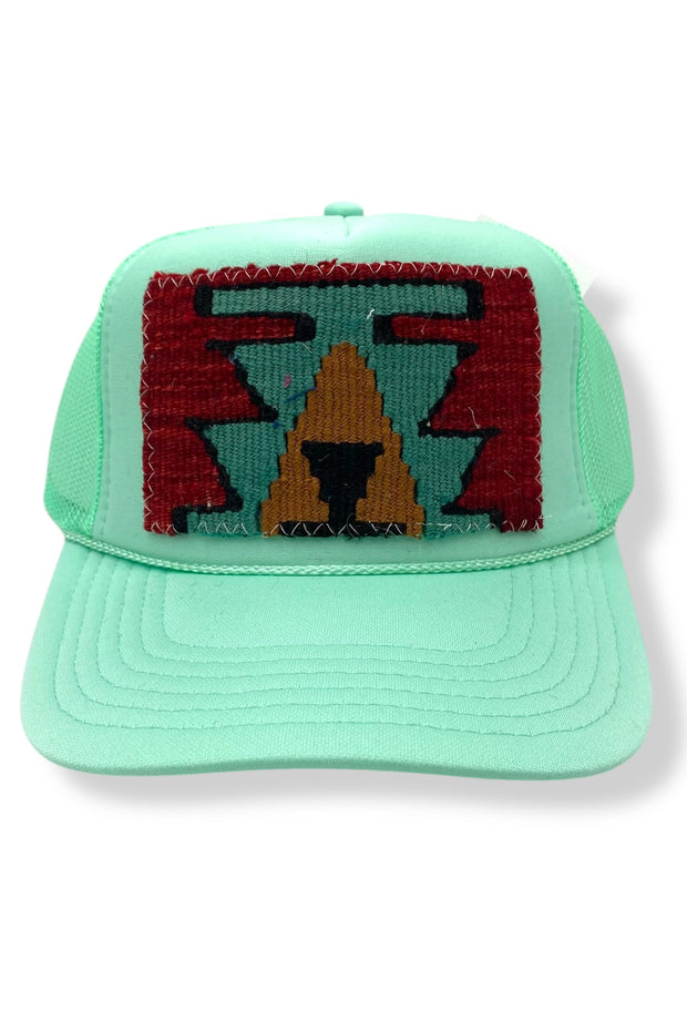 Your easy, throw-on-and-go, trucker with Turkish kilim patch. No two are alike! One size hat with structured bill and mesh back with adjustable snaps. Each piece has been stitched to ensure quality and discourage fraying (Frayering adds character your collectable) while maintaining the integrity of the fabric. However, due to the nature of the textiles, some fraying may occur. Additionally, color variations & imperfections should be expected as the norm. Wear with care!