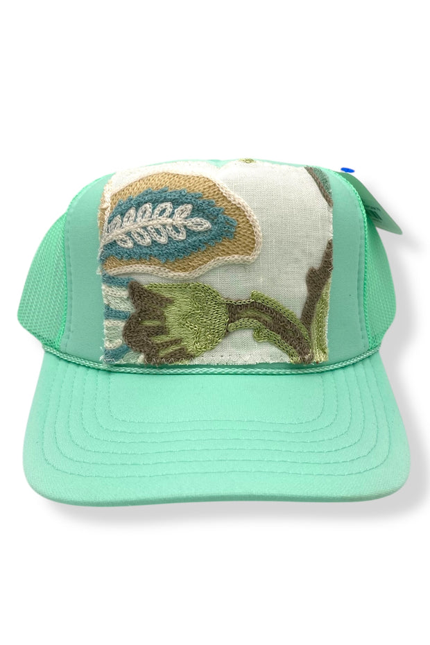 Your easy, throw-on-and-go, trucker with Turkish kilim patch. No two are alike! One size hat with structured bill and mesh back with adjustable snaps. Each piece has been stitched to ensure quality and discourage fraying (Fraying adds character your collectable) while maintaining the integrity of the fabric. However, due to the nature of the textiles, some fraying may occur. Additionally, color variations & imperfections should be expected as the norm. Wear with care!