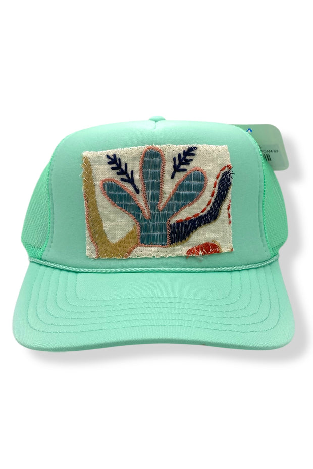 Your easy, throw-on-and-go, trucker with Turkish kilim patch. No two are alike! One size hat with structured bill and mesh back with adjustable snaps. Each piece has been stitched to ensure quality and discourage fraying (Fraying adds character your collectable) while maintaining the integrity of the fabric. However, due to the nature of the textiles, some fraying may occur. Additionally, color variations & imperfections should be expected as the norm. Wear with care!