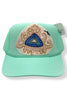 Your easy, throw-on-and-go, trucker with Turkish kilim patch. No two are alike! One size hat with structured bill and mesh back with adjustable snaps. Each piece has been stitched to ensure quality and discourage fraying (Fraying adds character your collectable) while maintaining the integrity of the fabric. However, due to the nature of the textiles, some fraying may occur. Additionally, color variations & imperfections should be expected as the norm. Wear with care!