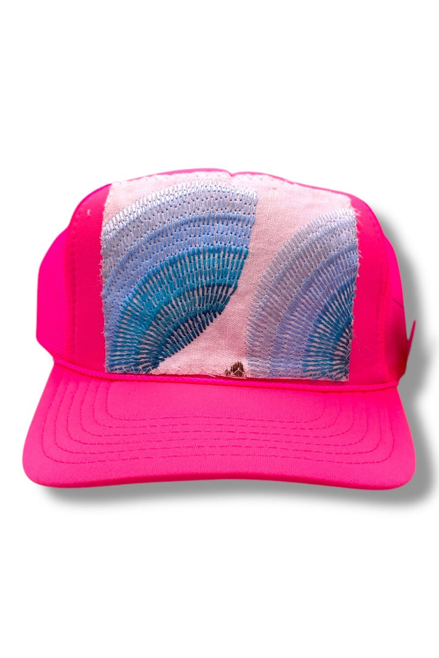 Your easy, throw-on-and-go, trucker with Turkish kilim patch. No two are alike! One size hat with structured bill and mesh back with adjustable snaps. Each piece has been stitched to ensure quality and discourage fraying (Fraying adds character your collectable) while maintaining the integrity of the fabric. However, due to the nature of the textiles, some fraying may occur. Additionally, color variations & imperfections should be expected as the norm. Wear with care!
