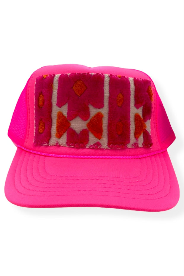 Your easy, throw-on-and-go, trucker with Turkish kilim patch. No two are alike! One size hat with structured bill and mesh back with adjustable snaps. Each piece has been stitched to ensure quality and discourage fraying (Fraying adds character your collectable) while maintaining the integrity of the fabric. However, due to the nature of the textiles, some fraying may occur. Additionally, color variations & imperfections should be expected as the norm. Wear with care!