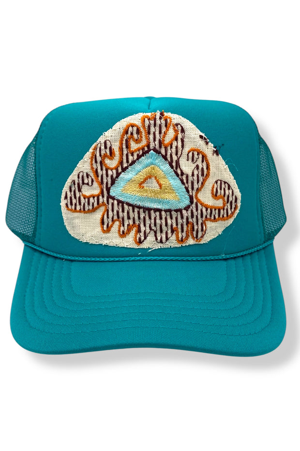 Your easy, throw-on-and-go, trucker with Turkish kilim patch. No two are alike! One size hat with structured bill and mesh back with adjustable snaps. Each piece has been stitched to ensure quality and discourage fraying (Fraying adds character your collectable) while maintaining the integrity of the fabric. However, due to the nature of the textiles, some fraying may occur. Additionally, color variations & imperfections should be expected as the norm. Wear with care!