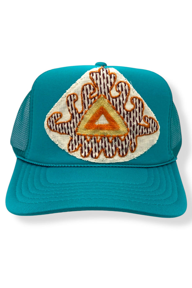 Your easy, throw-on-and-go, trucker with Turkish kilim patch. No two are alike! One size hat with structured bill and mesh back with adjustable snaps. Each piece has been stitched to ensure quality and discourage fraying (Fraying adds character your collectable) while maintaining the integrity of the fabric. However, due to the nature of the textiles, some fraying may occur. Additionally, color variations & imperfections should be expected as the norm. Wear with care!