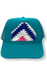 Your easy, throw-on-and-go, trucker with Turkish kilim patch. No two are alike! One size hat with structured bill and mesh back with adjustable snaps. Each piece has been stitched to ensure quality and discourage fraying (Fraying adds character your collectable) while maintaining the integrity of the fabric. However, due to the nature of the textiles, some fraying may occur. Additionally, color variations & imperfections should be expected as the norm. Wear with care!