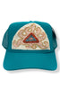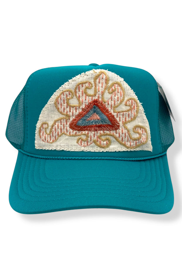 Your easy, throw-on-and-go, trucker with Turkish kilim patch. No two are alike! One size hat with structured bill and mesh back with adjustable snaps. Each piece has been stitched to ensure quality and discourage fraying (Fraying adds character your collectable) while maintaining the integrity of the fabric. However, due to the nature of the textiles, some fraying may occur. Additionally, color variations & imperfections should be expected as the norm. Wear with care!
