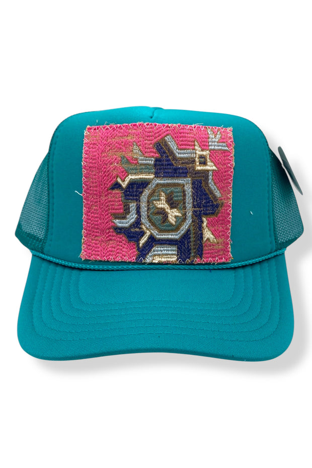 Your easy, throw-on-and-go, trucker with Turkish kilim patch. No two are alike! One size hat with structured bill and mesh back with adjustable snaps. Each piece has been stitched to ensure quality and discourage fraying (Fraying adds character your collectable) while maintaining the integrity of the fabric. However, due to the nature of the textiles, some fraying may occur. Additionally, color variations & imperfections should be expected as the norm. Wear with care!