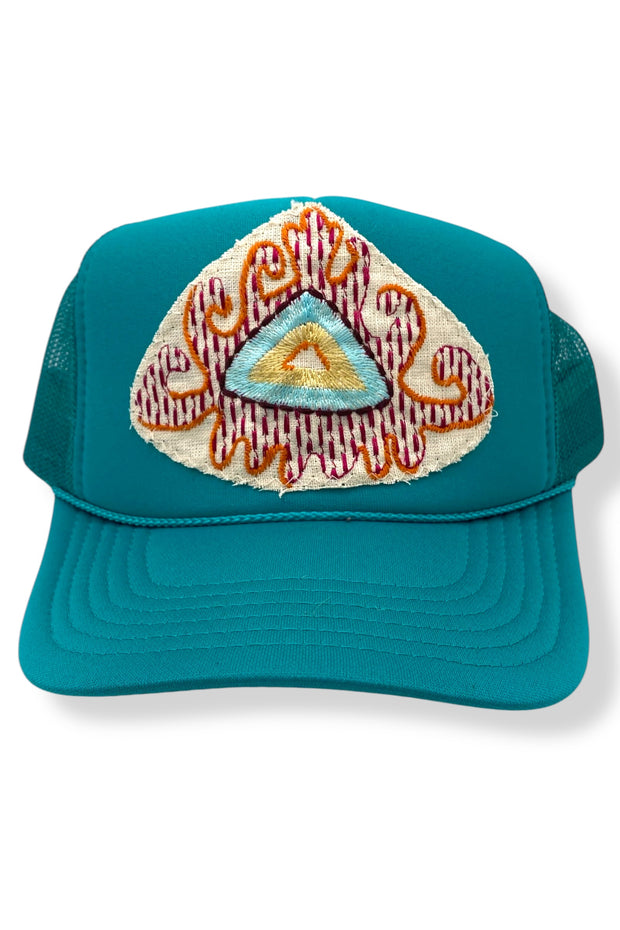 Your easy, throw-on-and-go, trucker with Turkish kilim patch. No two are alike! One size hat with structured bill and mesh back with adjustable snaps. Each piece has been stitched to ensure quality and discourage fraying (Fraying adds character your collectable) while maintaining the integrity of the fabric. However, due to the nature of the textiles, some fraying may occur. Additionally, color variations & imperfections should be expected as the norm. Wear with care!