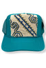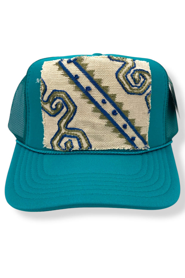 Your easy, throw-on-and-go, trucker with Turkish kilim patch. No two are alike! One size hat with structured bill and mesh back with adjustable snaps. Each piece has been stitched to ensure quality and discourage fraying (Fraying adds character your collectable) while maintaining the integrity of the fabric. However, due to the nature of the textiles, some fraying may occur. Additionally, color variations & imperfections should be expected as the norm. Wear with care!