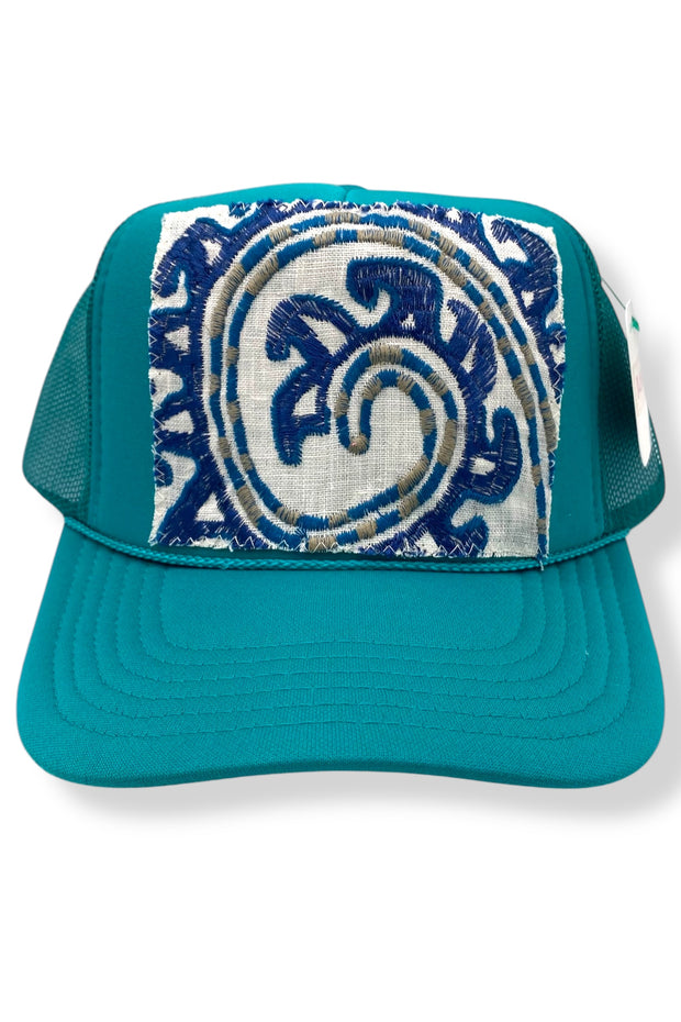 Your easy, throw-on-and-go, trucker with Turkish kilim patch. No two are alike! One size hat with structured bill and mesh back with adjustable snaps. Each piece has been stitched to ensure quality and discourage fraying (Fraying adds character your collectable) while maintaining the integrity of the fabric. However, due to the nature of the textiles, some fraying may occur. Additionally, color variations & imperfections should be expected as the norm. Wear with care!