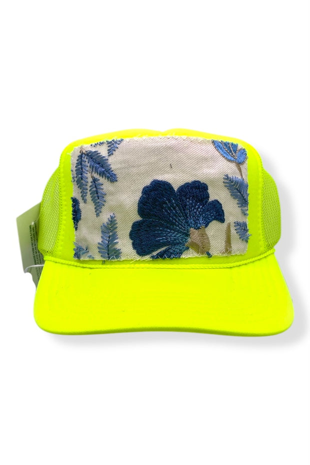 Your easy, throw-on-and-go, trucker with Turkish kilim patch. No two are alike! One size hat with structured bill and mesh back with adjustable snaps. Each piece has been stitched to ensure quality and discourage fraying (Fraying adds character your collectable) while maintaining the integrity of the fabric. However, due to the nature of the textiles, some fraying may occur. Additionally, color variations & imperfections should be expected as the norm. Wear with care!