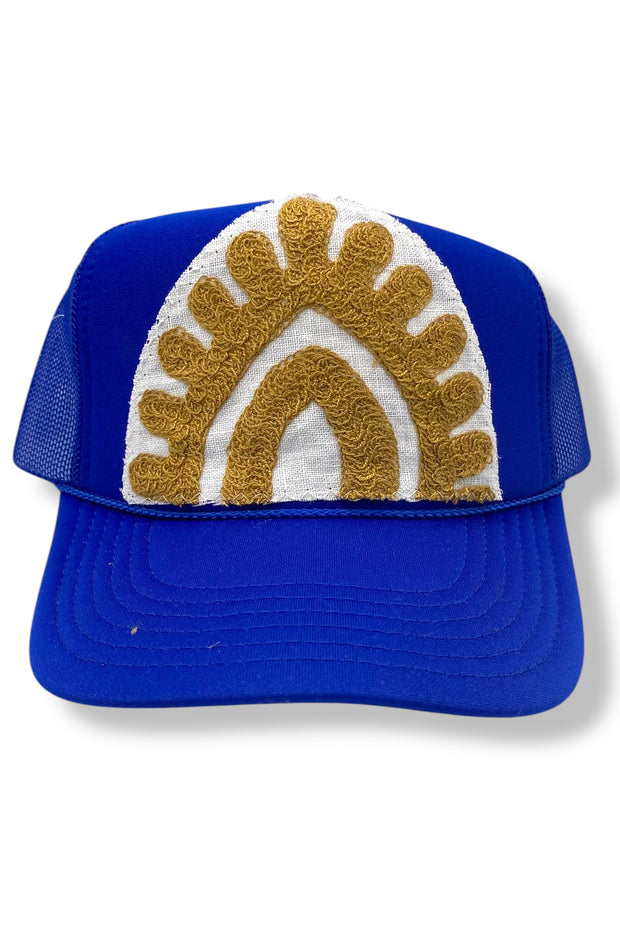 Your easy, throw-on-and-go, trucker with Turkish kilim patch. No two are alike! One size hat with structured bill and mesh back with adjustable snaps. Each piece has been stitched to ensure quality and discourage fraying (Frayering adds character your collectable) while maintaining the integrity of the fabric. However, due to the nature of the textiles, some fraying may occur. Additionally, color variations & imperfections should be expected as the norm. Wear with care!