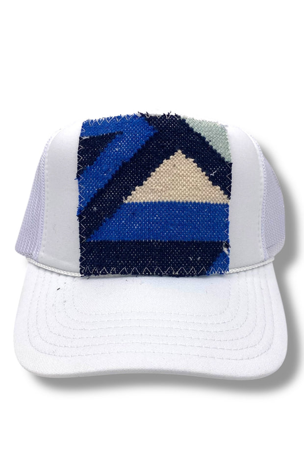 Your easy, throw-on-and-go, trucker with Turkish kilim patch. No two are alike! One size hat with structured bill and mesh back with adjustable snaps. Each piece has been stitched to ensure quality and discourage fraying (Fraying adds character your collectable) while maintaining the integrity of the fabric. However, due to the nature of the textiles, some fraying may occur. Additionally, color variations & imperfections should be expected as the norm. Wear with care!