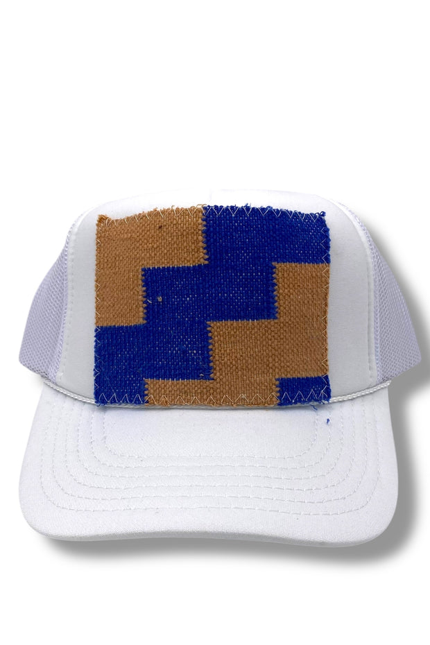 Your easy, throw-on-and-go, trucker with Turkish kilim patch. No two are alike! One size hat with structured bill and mesh back with adjustable snaps. Each piece has been stitched to ensure quality and discourage fraying (Fraying adds character your collectable) while maintaining the integrity of the fabric. However, due to the nature of the textiles, some fraying may occur. Additionally, color variations & imperfections should be expected as the norm. Wear with care!