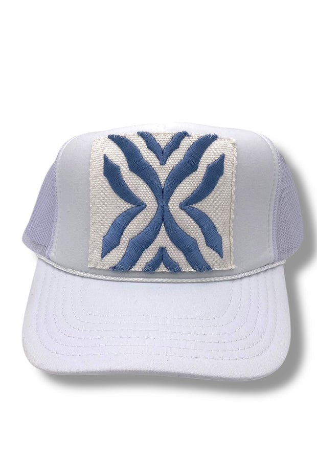 Your easy, throw-on-and-go, trucker with Turkish kilim patch. No two are alike! One size hat with structured bill and mesh back with adjustable snaps. Each piece has been stitched to ensure quality and discourage fraying (Fraying adds character your collectable) while maintaining the integrity of the fabric. However, due to the nature of the textiles, some fraying may occur. Additionally, color variations & imperfections should be expected as the norm. Wear with care!