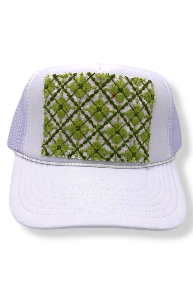 Your easy, throw-on-and-go, trucker with Turkish kilim patch. No two are alike! One size hat with structured bill and mesh back with adjustable snaps. Each piece has been stitched to ensure quality and discourage fraying (Fraying adds character your collectable) while maintaining the integrity of the fabric. However, due to the nature of the textiles, some fraying may occur. Additionally, color variations & imperfections should be expected as the norm. Wear with care!