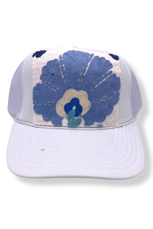 Your easy, throw-on-and-go, trucker with Turkish kilim patch. No two are alike! One size hat with structured bill and mesh back with adjustable snaps. Each piece has been stitched to ensure quality and discourage fraying (Fraying adds character your collectable) while maintaining the integrity of the fabric. However, due to the nature of the textiles, some fraying may occur. Additionally, color variations & imperfections should be expected as the norm. Wear with care!