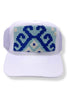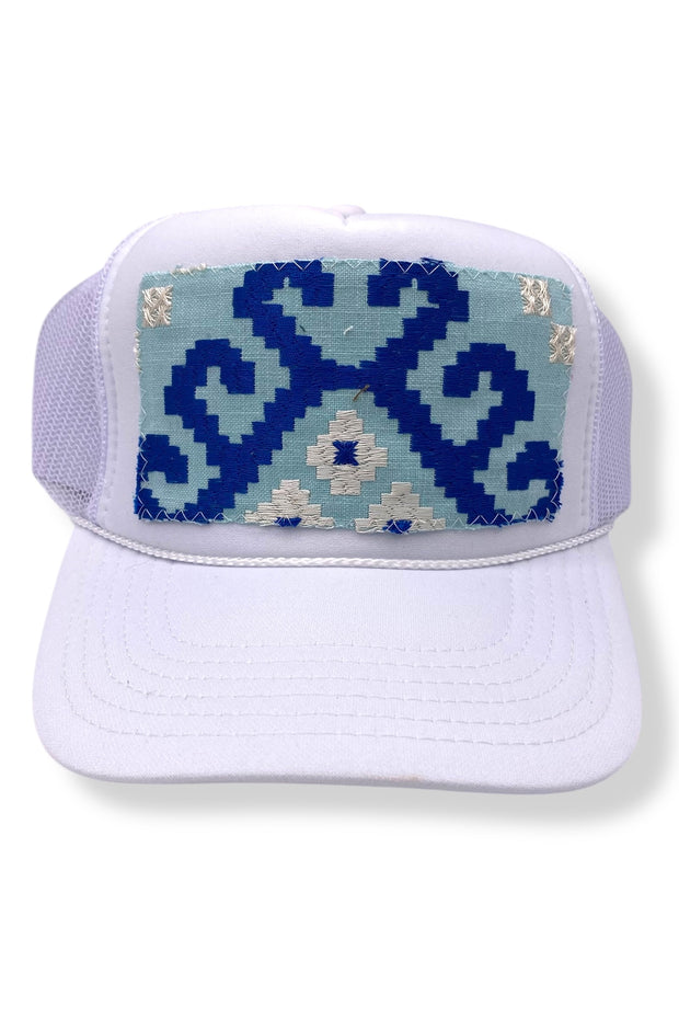 Your easy, throw-on-and-go, trucker with Turkish kilim patch. No two are alike! One size hat with structured bill and mesh back with adjustable snaps. Each piece has been stitched to ensure quality and discourage fraying (Fraying adds character your collectable) while maintaining the integrity of the fabric. However, due to the nature of the textiles, some fraying may occur. Additionally, color variations & imperfections should be expected as the norm. Wear with care!