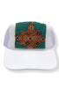 Your easy, throw-on-and-go, trucker with Turkish kilim patch. No two are alike! One size hat with structured bill and mesh back with adjustable snaps. Each piece has been stitched to ensure quality and discourage fraying (Fraying adds character your collectable) while maintaining the integrity of the fabric. However, due to the nature of the textiles, some fraying may occur. Additionally, color variations & imperfections should be expected as the norm. Wear with care!