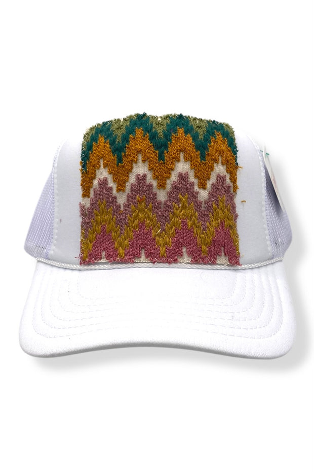 Your easy, throw-on-and-go, trucker with Turkish kilim patch. No two are alike! One size hat with structured bill and mesh back with adjustable snaps. Each piece has been stitched to ensure quality and discourage fraying (Fraying adds character your collectable) while maintaining the integrity of the fabric. However, due to the nature of the textiles, some fraying may occur. Additionally, color variations & imperfections should be expected as the norm. Wear with care!