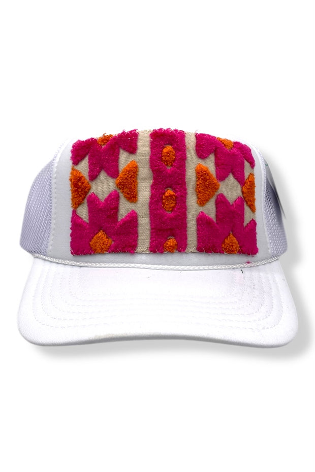Your easy, throw-on-and-go, trucker with Turkish kilim patch. No two are alike! One size hat with structured bill and mesh back with adjustable snaps. Each piece has been stitched to ensure quality and discourage fraying (Fraying adds character your collectable) while maintaining the integrity of the fabric. However, due to the nature of the textiles, some fraying may occur. Additionally, color variations & imperfections should be expected as the norm. Wear with care!