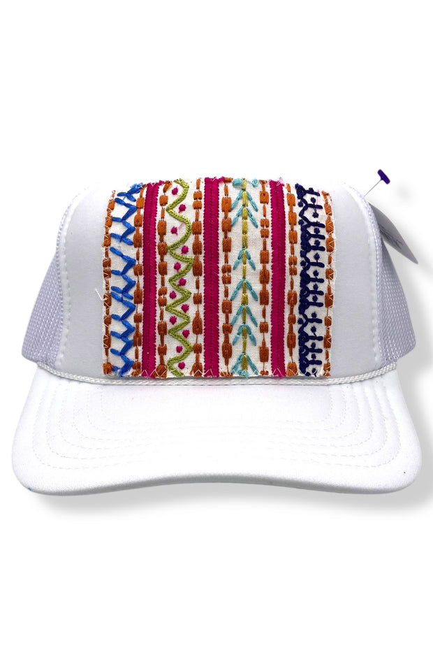Your easy, throw-on-and-go, trucker with Turkish kilim patch. No two are alike! One size hat with structured bill and mesh back with adjustable snaps. Each piece has been stitched to ensure quality and discourage fraying (Fraying adds character your collectable) while maintaining the integrity of the fabric. However, due to the nature of the textiles, some fraying may occur. Additionally, color variations & imperfections should be expected as the norm. Wear with care!