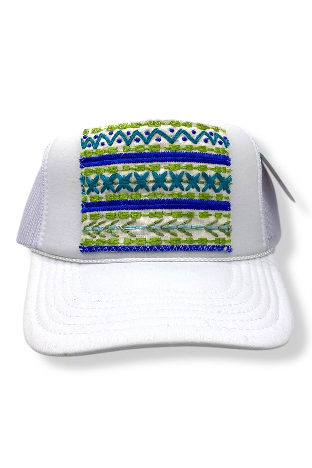 Your easy, throw-on-and-go, trucker with Turkish kilim patch. No two are alike! One size hat with structured bill and mesh back with adjustable snaps. Each piece has been stitched to ensure quality and discourage fraying (Fraying adds character your collectable) while maintaining the integrity of the fabric. However, due to the nature of the textiles, some fraying may occur. Additionally, color variations & imperfections should be expected as the norm. Wear with care!
