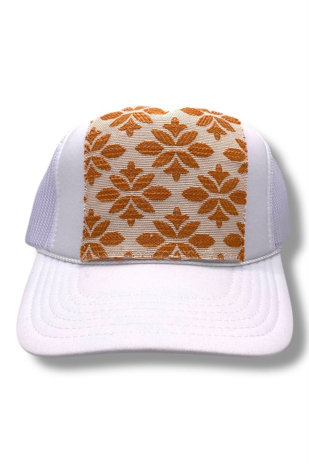 Your easy, throw-on-and-go, trucker with Turkish kilim patch. No two are alike! One size hat with structured bill and mesh back with adjustable snaps. Each piece has been stitched to ensure quality and discourage fraying (Fraying adds character your collectable) while maintaining the integrity of the fabric. However, due to the nature of the textiles, some fraying may occur. Additionally, color variations & imperfections should be expected as the norm. Wear with care!
