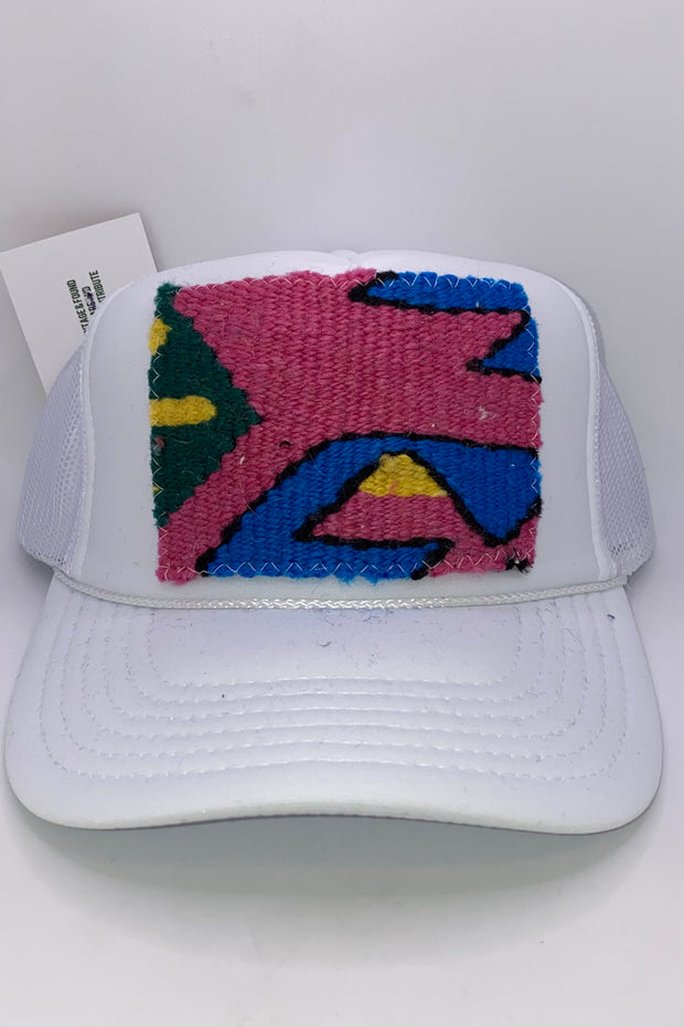 Your easy, throw-on-and-go, trucker with Turkish kilim patch. No two are alike! One size hat with structured bill and mesh back with adjustable snaps. Each piece has been stitched to ensure quality and discourage fraying (Frayering adds character your collectable) while maintaining the integrity of the fabric. However, due to the nature of the textiles, some fraying may occur. Additionally, color variations & imperfections should be expected as the norm. Wear with care!