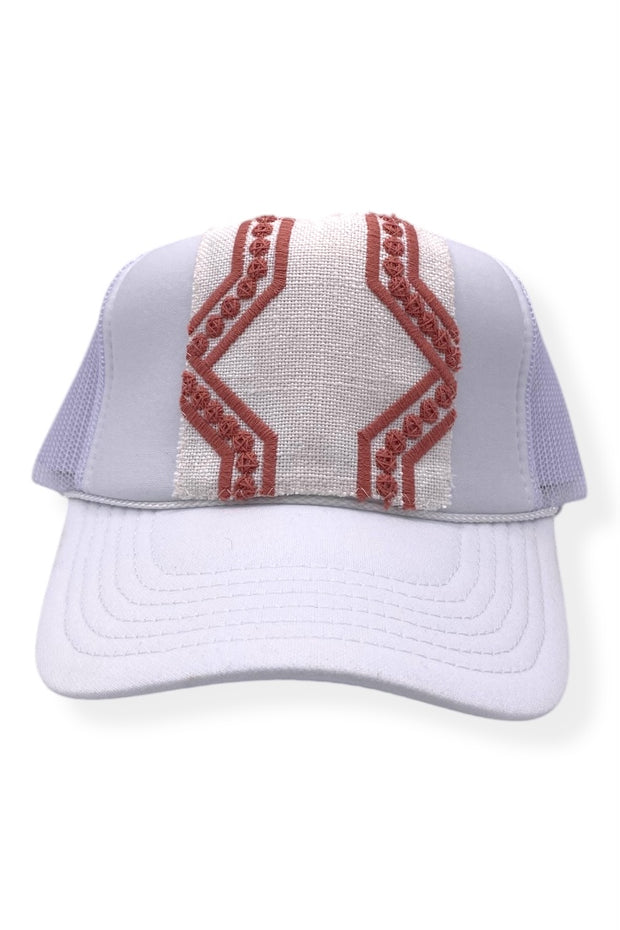 Your easy, throw-on-and-go, trucker with Turkish kilim patch. No two are alike! One size hat with structured bill and mesh back with adjustable snaps. Each piece has been stitched to ensure quality and discourage fraying (Fraying adds character your collectable) while maintaining the integrity of the fabric. However, due to the nature of the textiles, some fraying may occur. Additionally, color variations & imperfections should be expected as the norm. Wear with care!