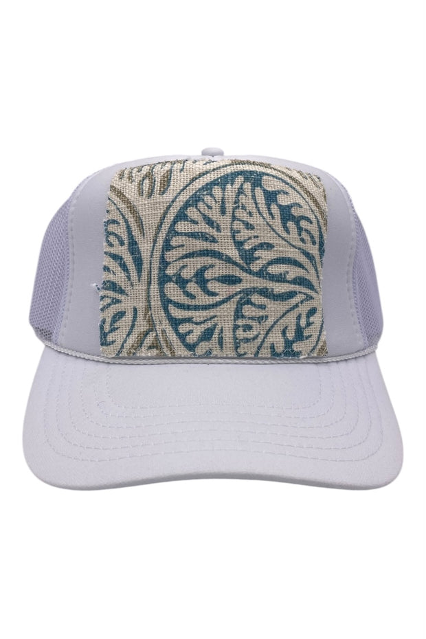 Your easy, throw-on-and-go, trucker with Turkish kilim patch. No two are alike! One size hat with structured bill and mesh back with adjustable snaps. Each piece has been stitched to ensure quality and discourage fraying (Fraying adds character your collectable) while maintaining the integrity of the fabric. However, due to the nature of the textiles, some fraying may occur. Additionally, color variations & imperfections should be expected as the norm. Wear with care!