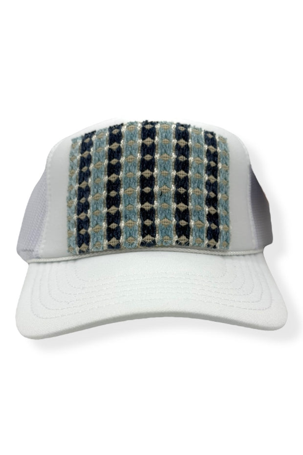 Your easy, throw-on-and-go, trucker with Turkish kilim patch. No two are alike! One size hat with structured bill and mesh back with adjustable snaps. Each piece has been stitched to ensure quality and discourage fraying (Fraying adds character your collectable) while maintaining the integrity of the fabric. However, due to the nature of the textiles, some fraying may occur. Additionally, color variations & imperfections should be expected as the norm. Wear with care!