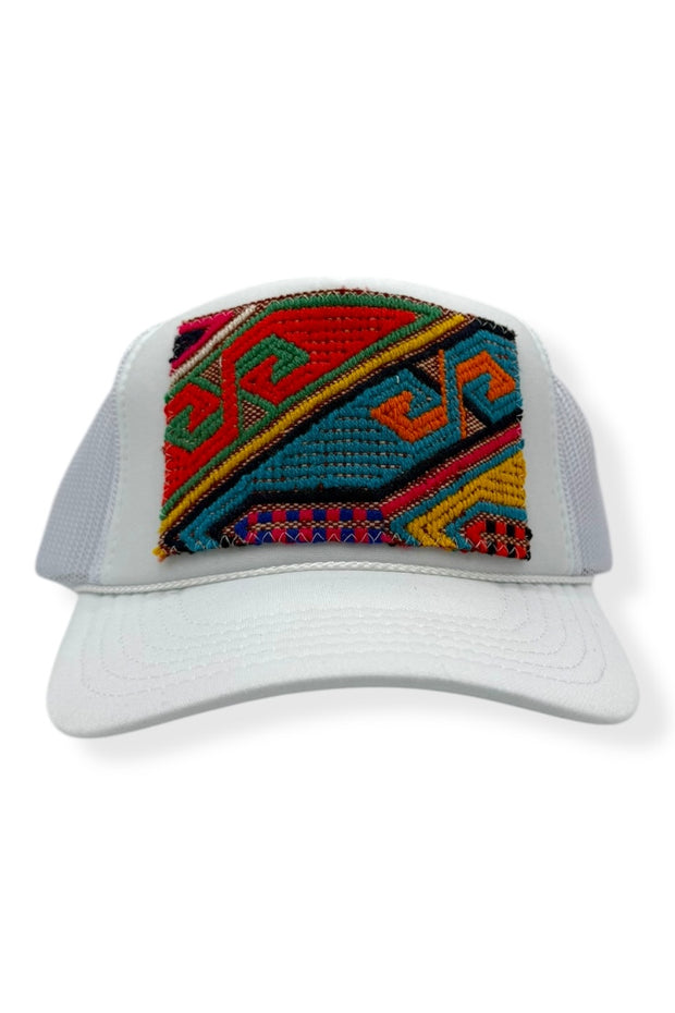 Your easy, throw-on-and-go, trucker with Turkish kilim patch. No two are alike! One size hat with structured bill and mesh back with adjustable snaps. Each piece has been stitched to ensure quality and discourage fraying (Fraying adds character your collectable) while maintaining the integrity of the fabric. However, due to the nature of the textiles, some fraying may occur. Additionally, color variations & imperfections should be expected as the norm. Wear with care!