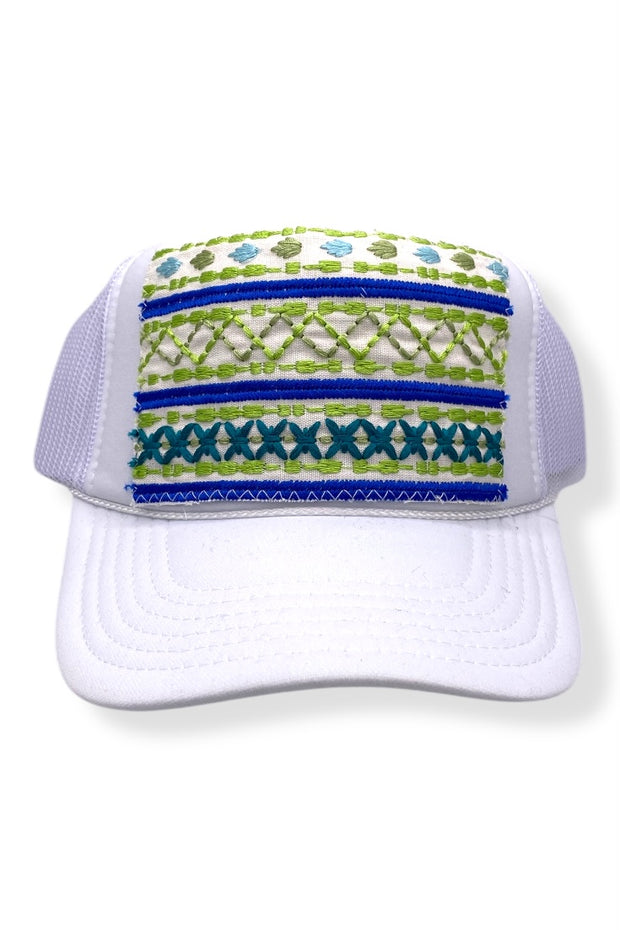 Your easy, throw-on-and-go, trucker with Turkish kilim patch. No two are alike! One size hat with structured bill and mesh back with adjustable snaps. Each piece has been stitched to ensure quality and discourage fraying (Fraying adds character your collectable) while maintaining the integrity of the fabric. However, due to the nature of the textiles, some fraying may occur. Additionally, color variations & imperfections should be expected as the norm. Wear with care!
