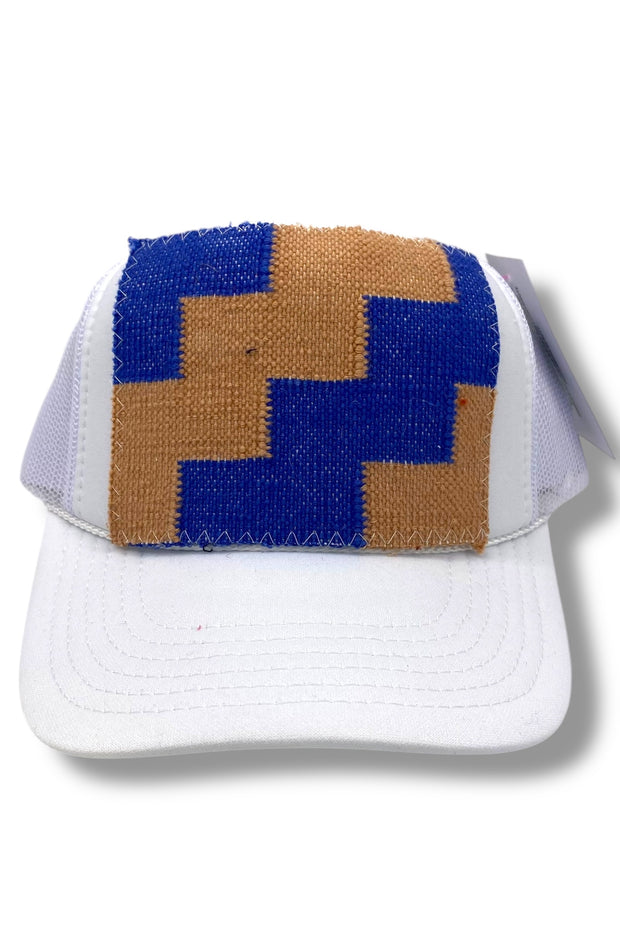 Your easy, throw-on-and-go, trucker with Turkish kilim patch. No two are alike! One size hat with structured bill and mesh back with adjustable snaps. Each piece has been stitched to ensure quality and discourage fraying (Fraying adds character your collectable) while maintaining the integrity of the fabric. However, due to the nature of the textiles, some fraying may occur. Additionally, color variations & imperfections should be expected as the norm. Wear with care!