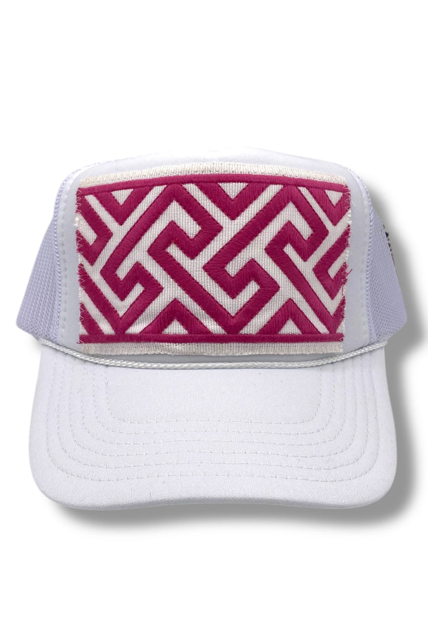 Your easy, throw-on-and-go, trucker with Turkish kilim patch. No two are alike! One size hat with structured bill and mesh back with adjustable snaps. Each piece has been stitched to ensure quality and discourage fraying (Fraying adds character your collectable) while maintaining the integrity of the fabric. However, due to the nature of the textiles, some fraying may occur. Additionally, color variations & imperfections should be expected as the norm. Wear with care!