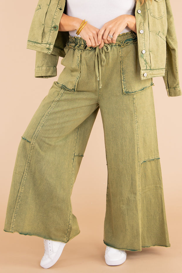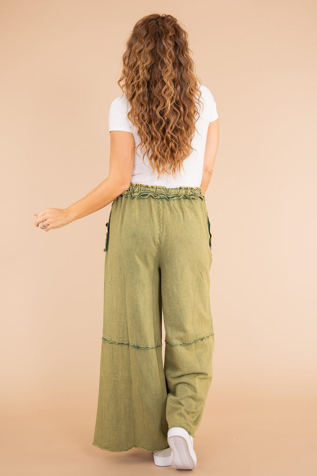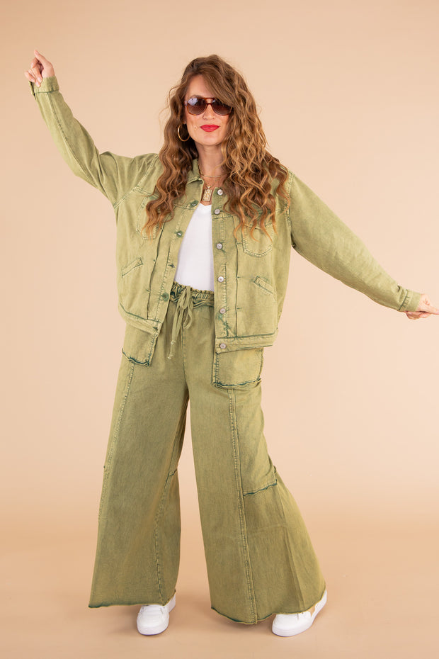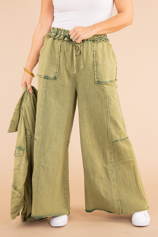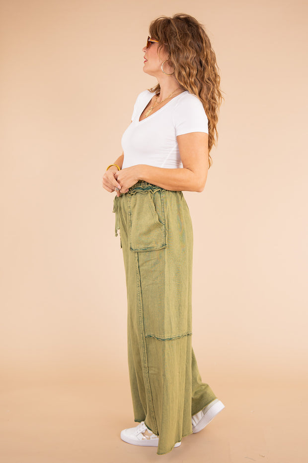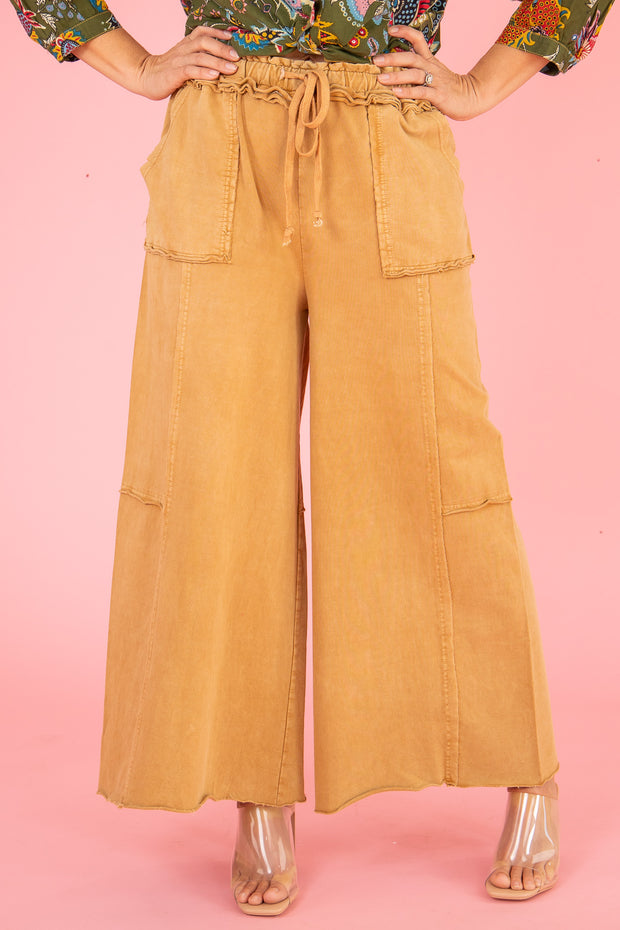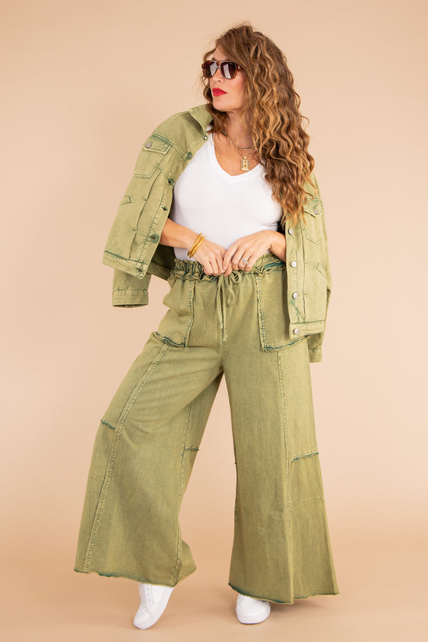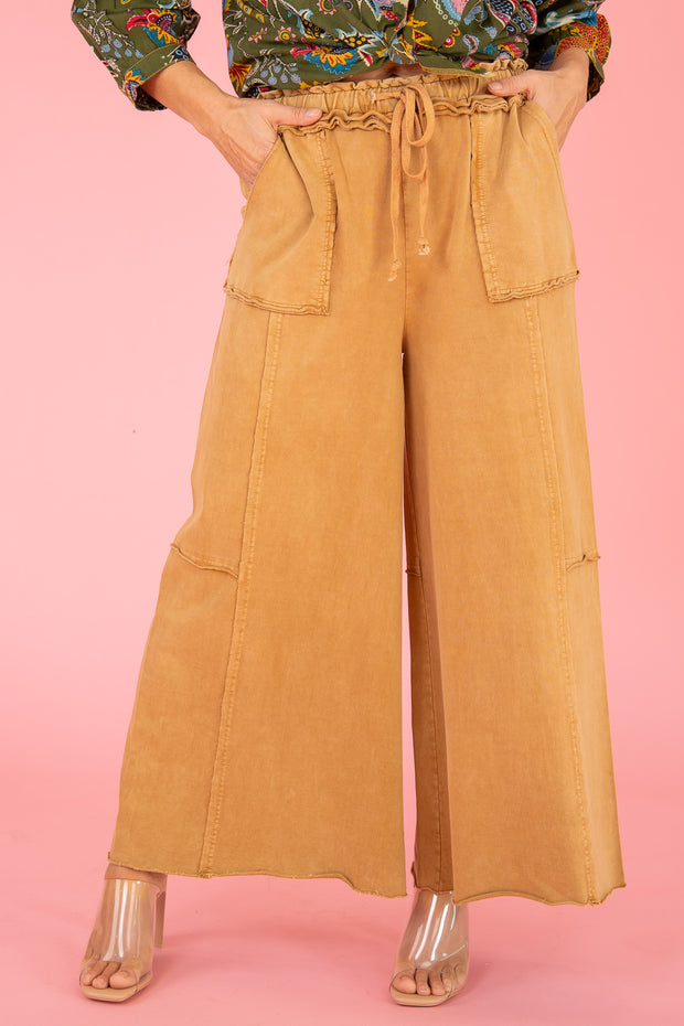 Introducing the Easy Going Pant - crafted from premium fabric for comfort and style. With a wide leg bottom, cropped silhouette, side pockets, and functional drawstring, these pants create a look that is both modern and effortless. Acid washing adds dimension and texture to the fabric for a unique finish. Look and feel your best in these pants.