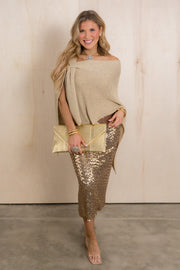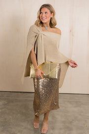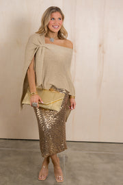 Expertly crafted in a shimmering metallic material, this Knit Metallic Gold Cardigan adds a touch of glamour to any outfit. With its open front and short sleeves, it is perfect for layering while the longer length provides a flattering fit.