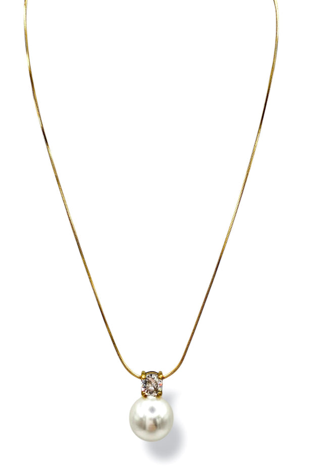 Elevate your style with this necklace - a gold chain showcasing a stunning pearl with a crystal above it. Designed exclusively by Kristalize. Enhance any outfit with this timeless and elegant accessory.