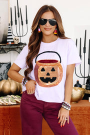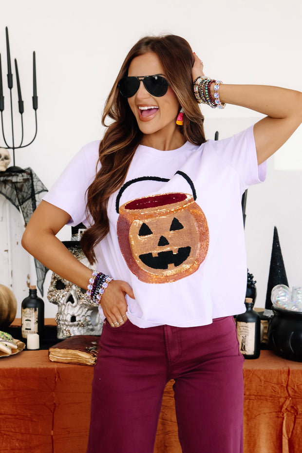 The Queen of Sparkles Lavender Pumpkin Short Sleeve Tee brings festive Halloween charm with its lavender color and sparkling sequin pumpkin design. Made for comfort and style, this tee is a perfect way to celebrate the season with a subtle, shimmering touch.