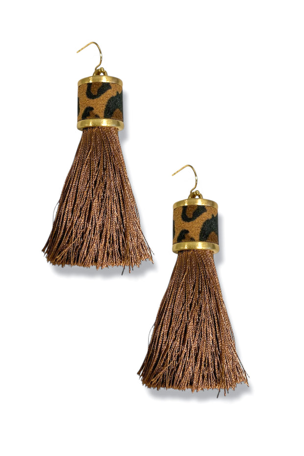 These earrings feature stylish leopard detailing, adding a touch of boldness to the classic tassel design. Perfect for elevating your everyday look with a subtle animal print accent.