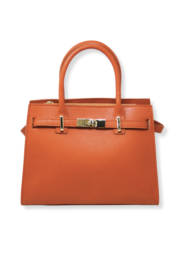 Crafted from Italian leather and embellished with gold hardware. It features a flexible top handle and has an interior divided into two spacious main compartments, separated by a central zip pocket. The front compartment includes two side pockets, while the back compartment has an additional zip pocket...