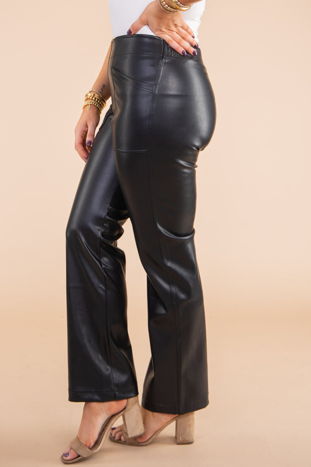 Look chic and stay comfortable in the On The Edge Leather Pant. Crafted with genuine leather, these bottoms feature a wide leg silhouette with a front zip button closure, side pockets, and an elastic waistband for an easy fit. Perfect for work or play.