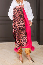 This vibrant fuchsia scarf features a bold leopard print design and playful fox pom poms at each end. Soft and cozy, it adds a fun, stylish touch to any outfit while keeping you warm on chilly days. Perfect for casual wear or to brighten up your winter wardrobe.