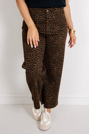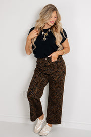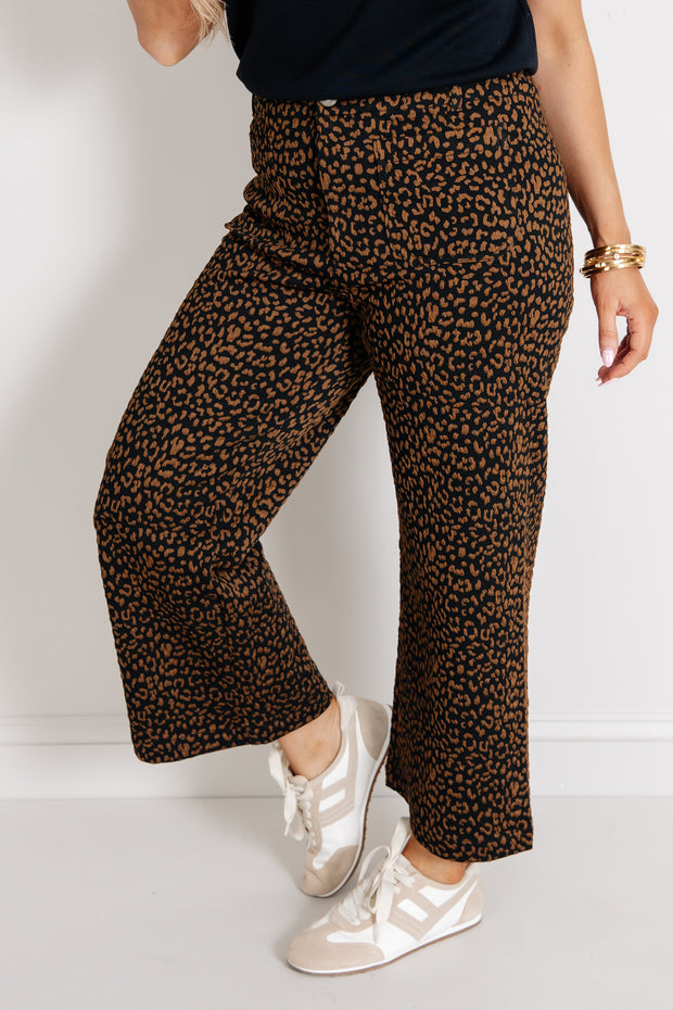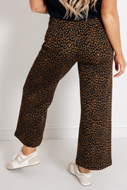 These Pants feature a front zip button closure and convenient front pockets. The wide leg silhouette offers a comfortable fit with a stylish leopard print that adds a bold touch to any outfit.