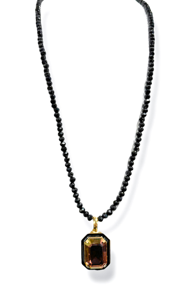 Liven up your look with this necklace! This sparkly stunner will have you turning heads, featuring beautiful beads and an antique gold-plated brass base metal pendant. Whether you're clinching a big deal or just looking to impress, this beauty will do the trick.