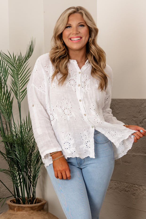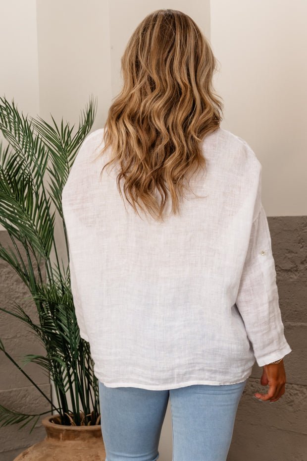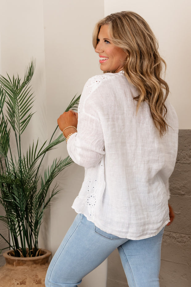 Indulge in comfort and elegance with our Milan Linen Blouse. Made from linen material, our blouse features a rounded neckline and long sleeves. The embroidered details add a touch of sophistication to this versatile piece. Stay stylish and comfortable all day long.